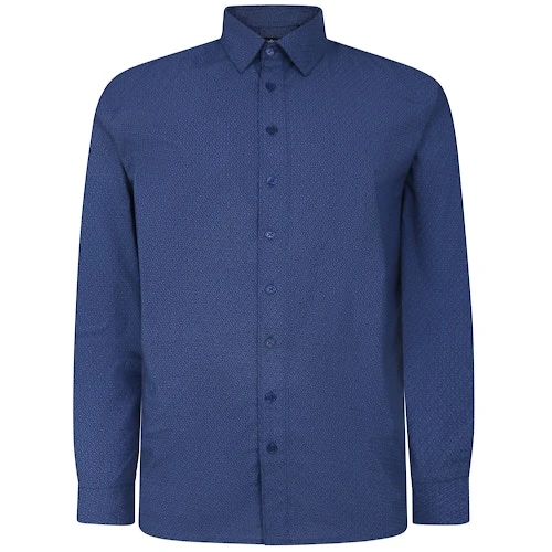 Bigdude All Over Abstract Print Long Sleeve Poplin Shirt Blue