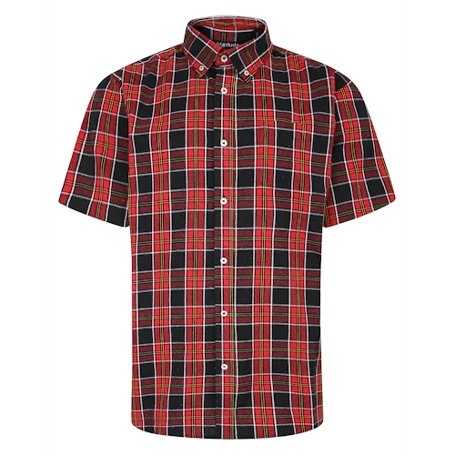 Bigdude Button Down Short Sleeve Check Shirt Light Red